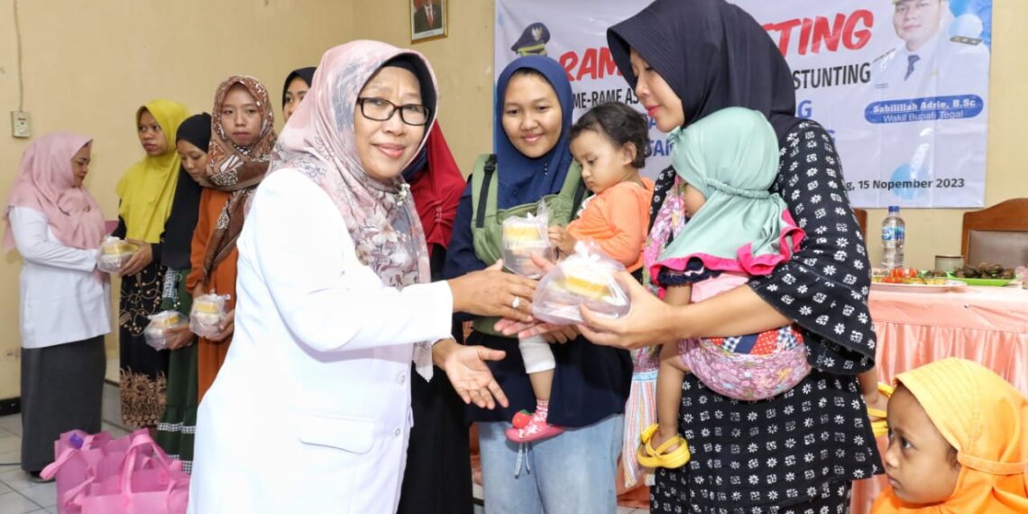Pagerbarang – Bupati Tegal Umi Azizah menyampaikan apresiasinya atas pencapaian program rame-rame sekabehane ASN cegah stunting (Rames Saceting) di Kecamatan Pagerbarang. Pernyataan tersebut disampaikan Umi saat meninjau proses pengolahan bahan makanan tambahan progam Rames Saceting di Kantor Kecamatan Pagerbarang, Rabu (15/11/2023).