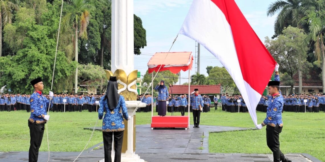 Slawi – Netralitas aparatur sipil negara (ASN) pada pemilu kembali diingatkan saat upacara peringatan HUT ke-52 Korps Pegawai Republik Indonesia (Korpri) di Lapangan Kantor Pemkab Tegal, Rabu (29/11/2023). Pesan ini disampaikan Ketua Umum Dewan Pengurus Korpri Nasional Zudan Arif Fakrulloh melalui sambutannya yang dibacakan Asisten Pemerintahan dan Kesejahteraan Sosial Sekretaris Daerah Kabupaten Tegal Suspriyanti saat bertindak sebagai inspektur upacara.