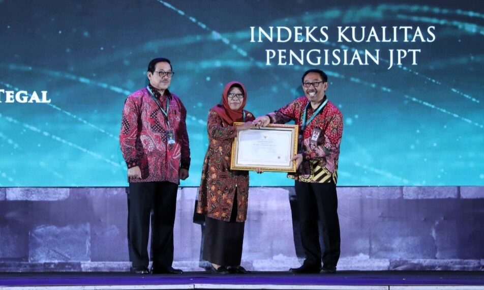Yogyakarta – Pemkab Tegal berhasil meraih dua penghargaan sekaligus dari Komisi Aparatur Sipil Negara (KASN) untuk kategori sistem merit dengan predikat baik dan manajemen talenta pada pengisian jabatan pimpinan tinggi (JPT) dengan predikat sangat baik. Bupati Tegal Umi Azizah hadir secara langsung menerima penghargaan bergengsi bidang reformasi birokrasi ini pada Anugerah Meritokrasi yang diselenggarakan di Hotel Pakuwon, Yogyakarta, Kamis (07/12/2023).