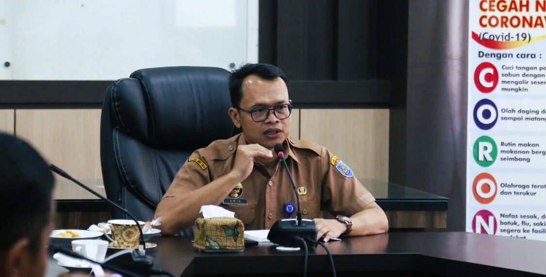Plh Bupati Tegal Amir saat memimpin rapat menyampaikan pesan perlunya bagian-bagian di lingkungan Sekretariat Daerah mengintensifkan fungsi koordinasi dengan perangkat daerah terkait melalui para asisten Sekda.
