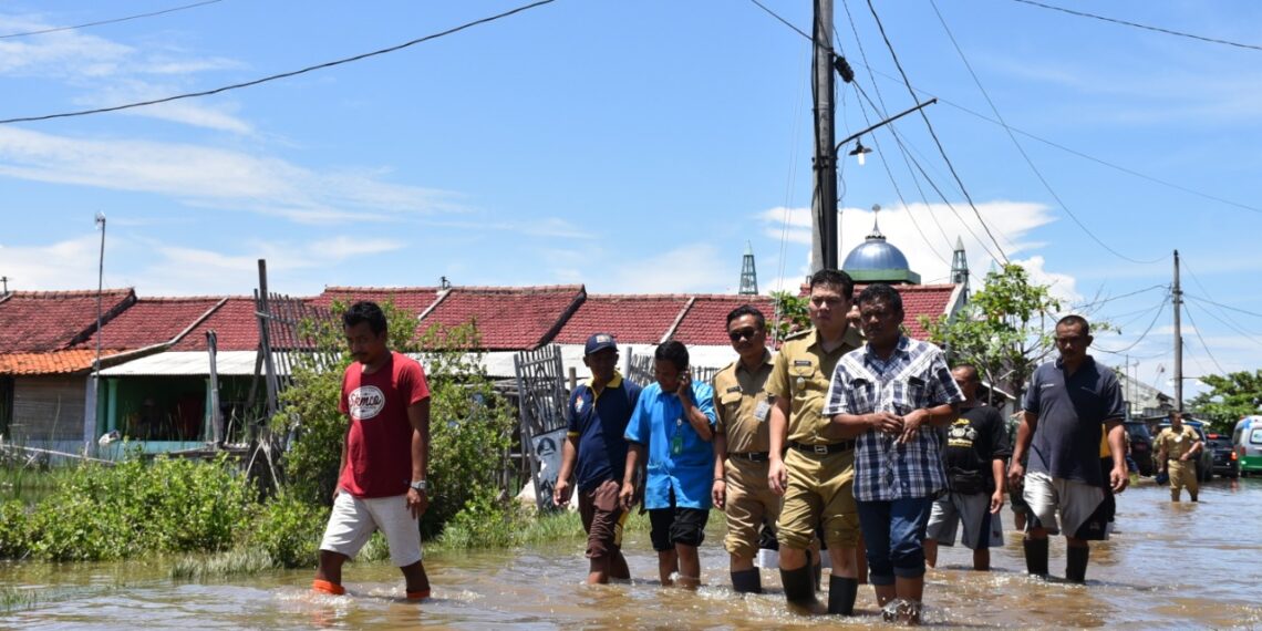 Margasari – Pj Bupati Tegal Agustyarsyah didampingi Sekretaris Daerah Kabupaten Tegal Amir Makhmud dan Kepala Pelaksana (Kalak) Badan Penanggulangan Bencana Daerah (BPBD) Kabupaten Tegal Elliya Hidayah meninjau lokasi dan menyalurkan bantuan kepada korban bencana banjir bandang di Desa Prupuk Utara, Kecamatan Margasari, Senin (05/02/2024) pagi.