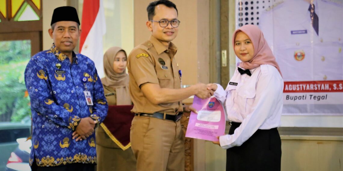 Slawi – Pemerintah Kabupaten Tegal resmi mengangkat 400 orang tenaga honorer menjadi aparatur sipil negara (ASN) berstatus pegawai pemerintah dengan perjanjian kerja atau PPPK. Mereka resmi menerima surat keputusan (SK) pengangkatan dari pejabat pembuat komitmen dan menandatangani perjanjian kerja selama lima tahun, terhitung tanggal 1 April 2024 sampai dengan 31 Maret 2029 di Pendopo Amangkurat, Senin (01/04/2024).