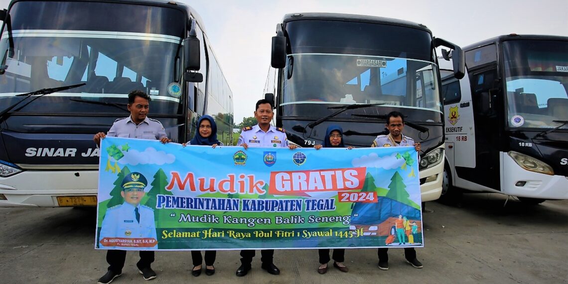 Slawi – Pemerintah Kabupaten Tegal melalui Dinas Perhubungan (Dishub) Kabupaten Tegal menyiapkan tiga armada bus pariwisata untuk mendukung program Mudik Gratis Pemerintah Provinsi Jawa Tengah pada mudik Lebaran Idul Fitri Tahun 2024. Program Mudik Gratis ini ditujukan bagi warga Kabupaten Tegal yang bekerja merantau di DKI Jakarta. Informasi tersebut diungkapkan Kepala Seksi Angkutan dan Terminal Dinas Perhubungan Kabupaten Tegal Agil Suprayogi saat ditemui di ruang kerjanya, Senin (01/04/2024).