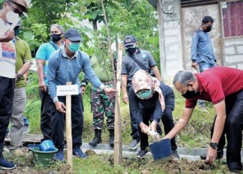 Kedungbanteng - Peringati Hari Menanam Pohon Nasional Tahun 2020, Pemkab Tegal melalui Dinas Lingkungan Hidup (DLH) Kabupaten Tegal tanam 150...