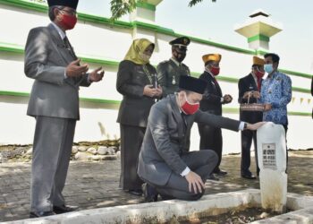 Lebaksiu - Memperingati Hari Pahlawan ke-75, Pemkab Tegal menggelar upacara dan tabur bunga di Taman Makam Pahlawan (TMP) Purakusuma Persada,...