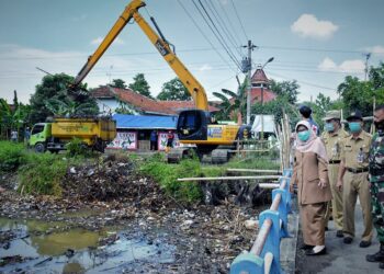 Dukuhturi - Memasuki musim penghujan, Pemerintah Kabupaten Tegal lakukan pengerukan sedimen tanah dan sampah di sisi selatan jembatan Kali Kemiri,...