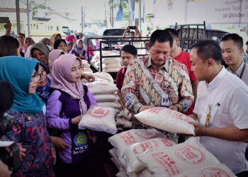 Talang - Penjabat Gubernur Jawa Tengah Nana Sudjana didampingi Bupati Tegal Umi Azizah menyalurkan bantuan pangan untuk membantu penanganan stunting...