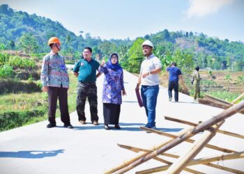 Margasari – Bupati Tegal Umi Azizah didampingi Pelaksana Tugas Kepala Dinas Pekerjaan Umum dan Penataan Ruang (DPUPR) Kabupaten Tegal Teguh...