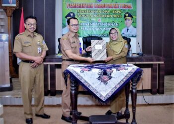 Slawi - Bupati Tegal Umi Azizah menyerahkan dokumen pelaksanaan anggaran satuan kerja perangkat daerah (DPA-SKPD) sebagai panduan pelaksanaan belanja APBD...