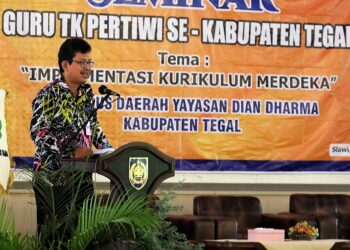 Slawi - Sebanyak 196 guru TK Pertiwi mengikuti Seminar Implementasi Kurikulum Merdeka yang diselenggarakan oleh Yayasan Dian Dharma Kabupaten Tegal....