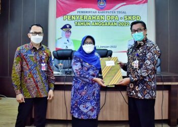 Slawi - Bupati Tegal Umi Azizah resmi serahkan dokumen pelaksanaan anggaran satuan kerja perangkat daerah (DPA SKPD) 2022 kepada seluruh...