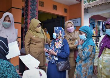 Bumijawa - Bupati Tegal Umi Azizah tinjau pelaksanaan vaksinasi dari rumah ke rumah atau door to door di tiga desa...