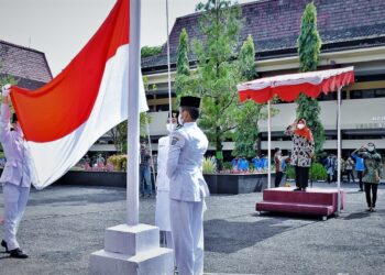 Slawi - Ada yang berbeda pada pelaksanaan upacara peringatan Hari Sumpah Pemuda 2021 yang digelar di halaman belakang Kantor Pemda...