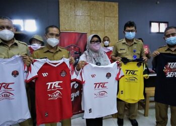 Slawi - Dukung kesebelasan Persekat berlaga di grub B Liga 2 Indonesia tahun 2021, Bupati Tegal Umi Azizah borong jersey...