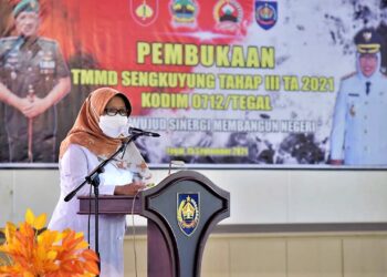 Slawi - Pelaksanaan program TNI Manunggal Membangun Desa (TMMD) Sengkuyung tahap tiga di Desa Karanganyar, Kecamatan Kedungbanteng tahun anggaran 2021...