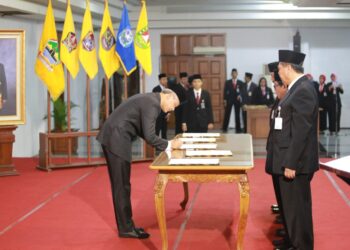 Semarang - Gubernur Jawa Tengah Ganjar Pranowo kukuhkan lima orang penjabat sementara (Pjs) bupati dan walikota pagi tadi (14/2) di ...