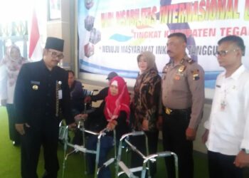 SLAWI - Bupati Tegal, Enthus Susmono, menghadiri peringatan Hari Disabilitas Internasional Tingkat Kabupaten Tegal di Pedopo Amangkurat Pemerintah Kabupaten Tegal, Rabu (6/12). Hadir ...