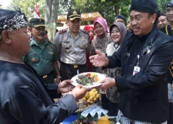 Upacara sedekah bumi di Waduk Cacaban Desa Karanganyar Kecamatan Kedungbanteng kembali digelar tahun 2017 ini, Kamis (19/10). Prosesi upacara sedekah ...