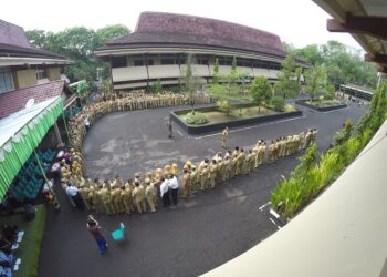 Hari pertama masuk kerja, Senin (3/7) kemarin, setelah libur Lebaran, jajaran Aparatur Sipil Negara (ASN) Pemkab Tegal mulai menggelar apel ...