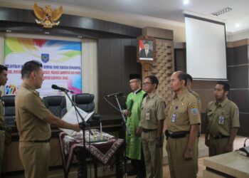 Slawi - Pengambilan Sumpah, Janji Jabatan dan Pelantikan Pejabat Fungsional di Lingkungan Pemerintah Kabupaten Tegal dilaksanakan Selasa (14\5) di Ruang ...
