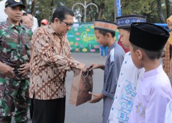 Slawi - Pj Bupati Tegal Agustyarsyah menyerahkan seribu paket bingkisan Ramadhan Bahagia dari Badan Amil Zakat Nasional (Baznas) Kabupaten Tegal ...
