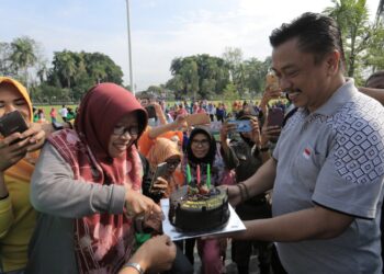 Slawi - Pada acara Senam Bersama Dalam Rangka Peringatan Hari Kartini Ke-140 tingkat Kabupaten Tegal Tahun 2019, Bupati Tegal, Umi ...