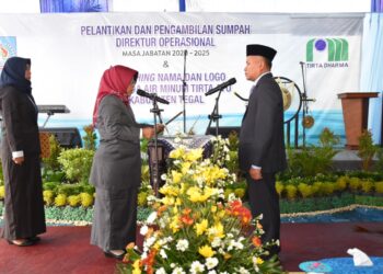 Slawi - Bupati Tegal Umi Azizah melantik Direktur Operasional Perusahaan Umum Daerah (Perumda) Tirta Ayu Kabupaten Tegal Edy Shofyan masa ...