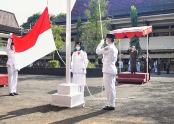 Slawi - Pemerintah Kabupaten Tegal menggelar upacara peringatan Hari Pahlawan di lapangan tengah Kantor Sekretariat Daerah Kabupaten Tegal, Rabu (10/11/2021) ...